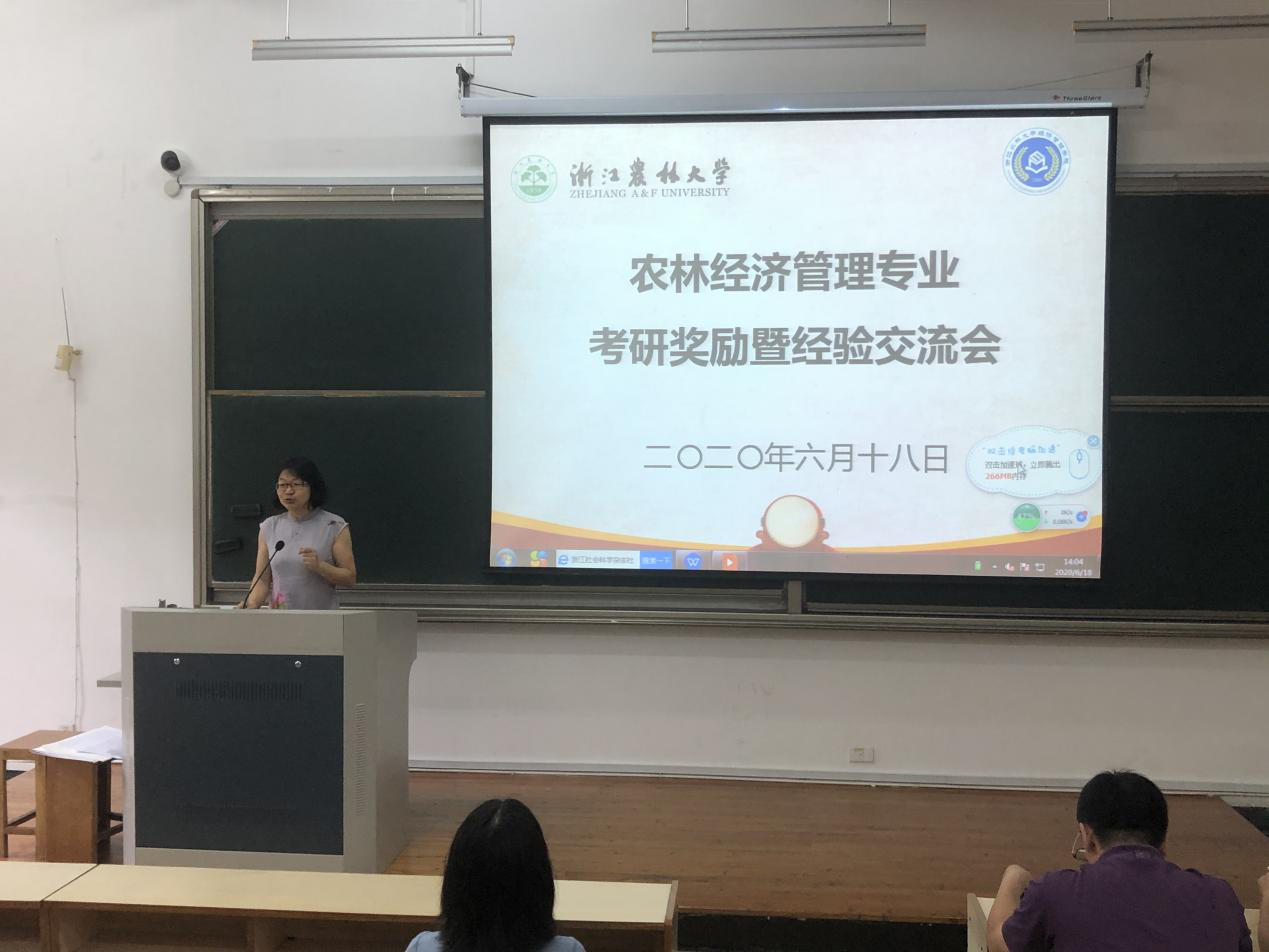 2020届农林经济管理专业在考研中再次取得佳绩,考研录取人数总共18人,录取率27.3%。其中,多名学生被中国人民大学、南京农业大学、华中农业大学、华东理工大学、上海外国语大学、美国南加州大学等国内外知名高校录取。交流会上首先由本科指导老师为优秀考研学生进行一一颁奖,以此勉励,同时农经2班获得了10000元优秀考研班级的团体奖励;其次,考取中国人民大学、上海外国语大学的学术型研究生计薇和蒋冰倩同学,考取湖南师范大学的金融专硕黄喜玲同学,以及成功申请到美国南加州大学的陈漪洋同学,分别进行发言,向学弟学妹们分享了考研和留学申请的成功经验。会议最后,李兰英老师进行了总结,希望农经专业每一届学子秉承“求真,敬业”的校训精神,在考研的道路上积极进取,不断地挖掘自身潜力,努力实现自己的考研梦想。