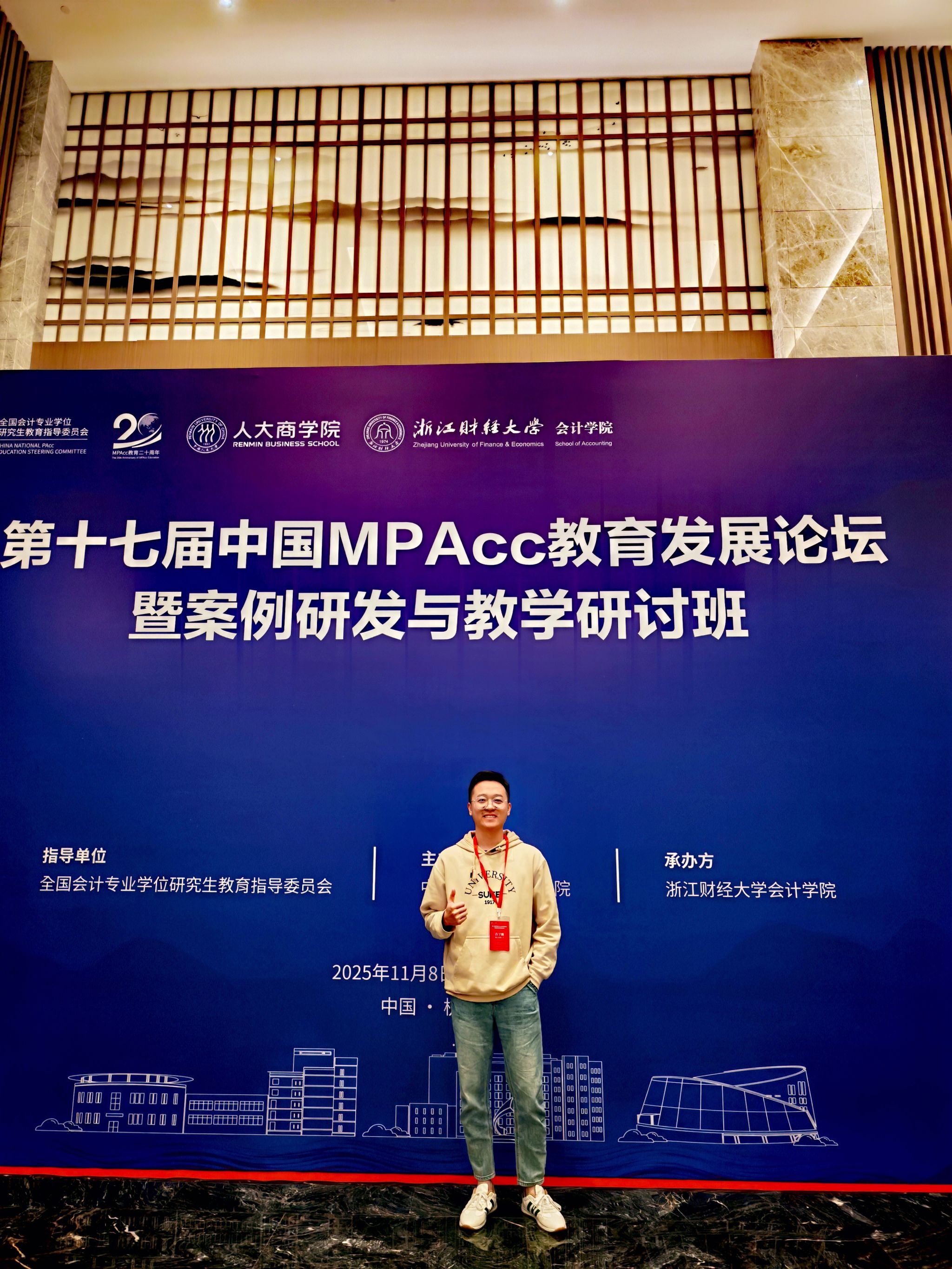 2025年11月8日至9日,由中国人民大学商学院主办,浙江财经大学会计学院承办的“第十七届中国MPAcc教育发展论坛暨案例研究与教学研讨班”在杭州举行,来自全国近150家MPAcc培养单位的230多位专家学者参加培训,我院会计学科许宇鹏副教授也应邀参加了本次论坛。