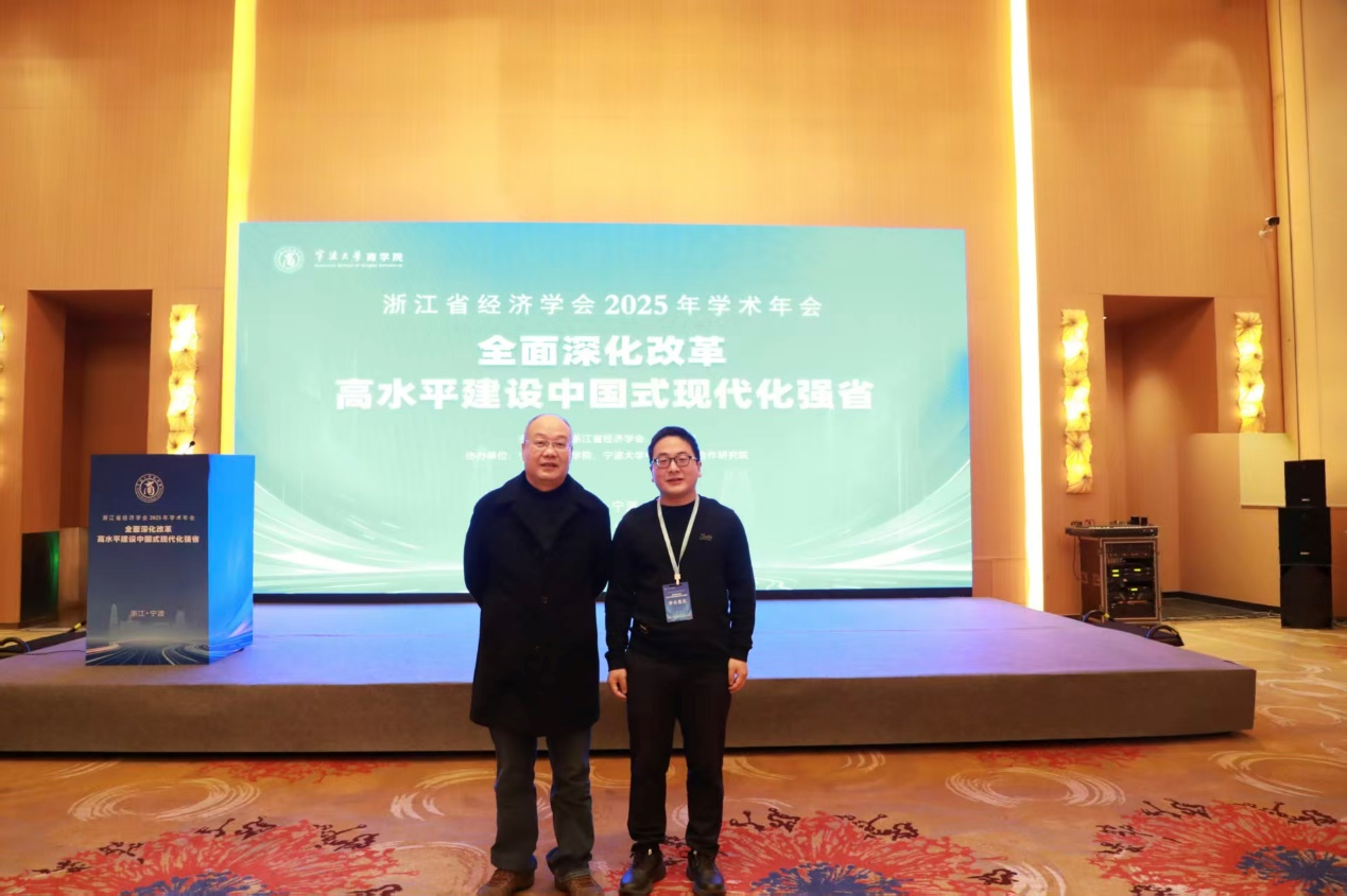 2025年11月28-29日,浙江省经济学会和宁波大学商学院联合举办浙江省经济学会2025年学术年会。本届年会的主题为“全面深化改革,高水平建设中国式现代化强省”,旨在系统探讨体制机制创新与治理体系现代化在推进中国式现代化浙江实践中的理论路径与实践策略,并为浙江在新征程中勇当先行者、谱写新篇章提供智力支持与政策参考。应用经济学学科项本武教授、孙阳阳博士参加了本次年会。